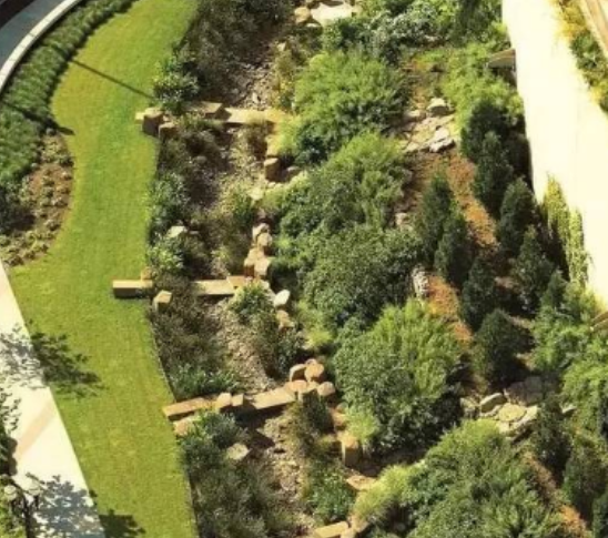 低影響開發(fā)設施的選擇應因地制宜,經(jīng)濟有效,方便易行,如人行道和機動車道選用透水鋪裝,結(jié)合下沉式綠地,生物滯留帶,積磚,滲井等低影響開發(fā)設施及其組合系統(tǒng).